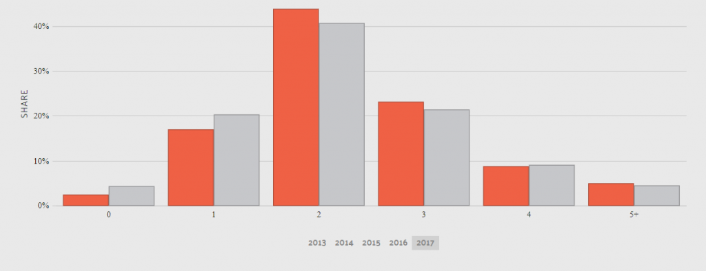This was followed closely by households that owned three cars. Owning multiple vehicles means you will pay more for your car insurance policy, which is why it pays to shop around.